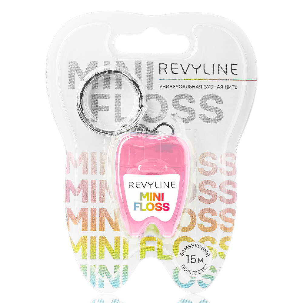 Зубная нить вощеная Revyline floss mini, полиэстер с бамбуковым углем, 15 м, розовая